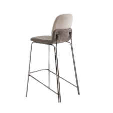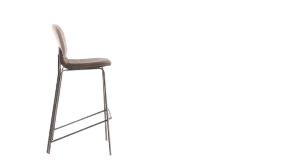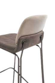 A combinação de diferentes materiais e tecidos no assento e no encosto, assim como a escolha de tonalidades tom sobre tom, permite a adaptação da banqueta a diferentes estilos de ambiente.